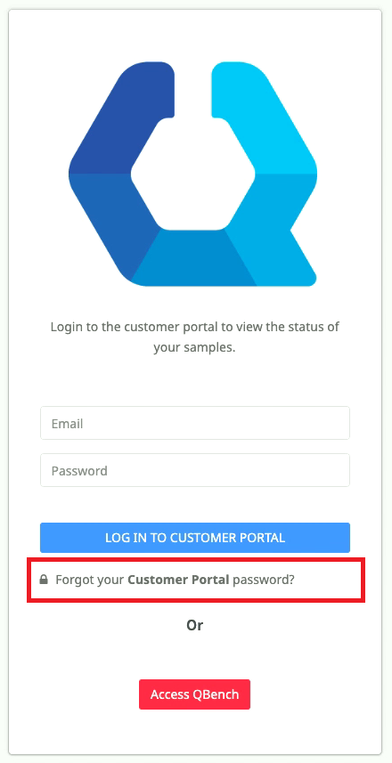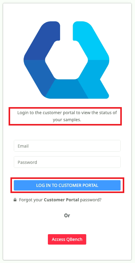 If your lab is leveraging the QBench Customer Portal your login screen will look like this.