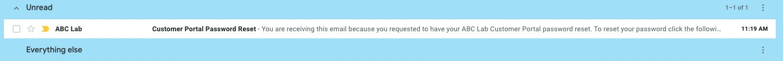The Email Subject line should say “Customer Portal Password Reset”