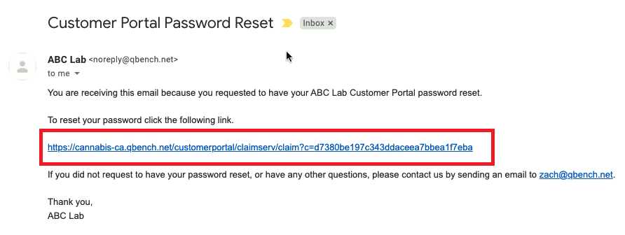To reset your QBench password you must use the correct password reset link.