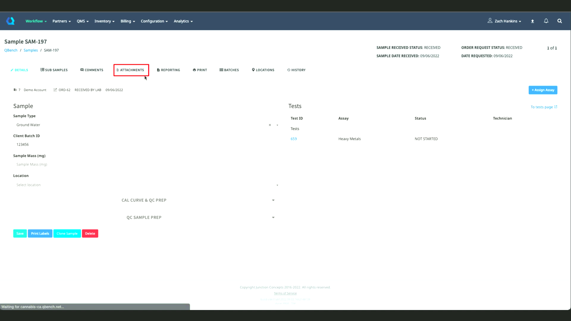 Pull up the sample to conduct various sample prep items like Image upload via attachments.