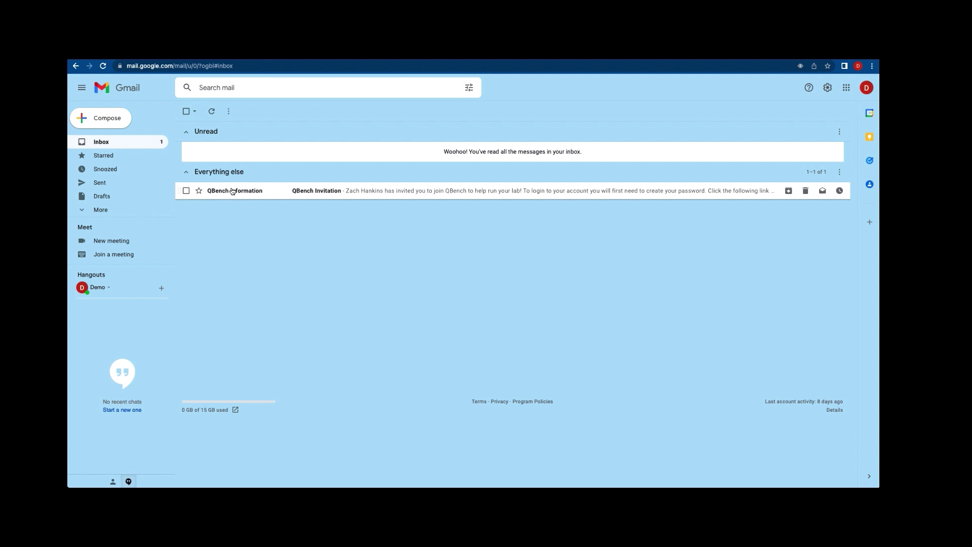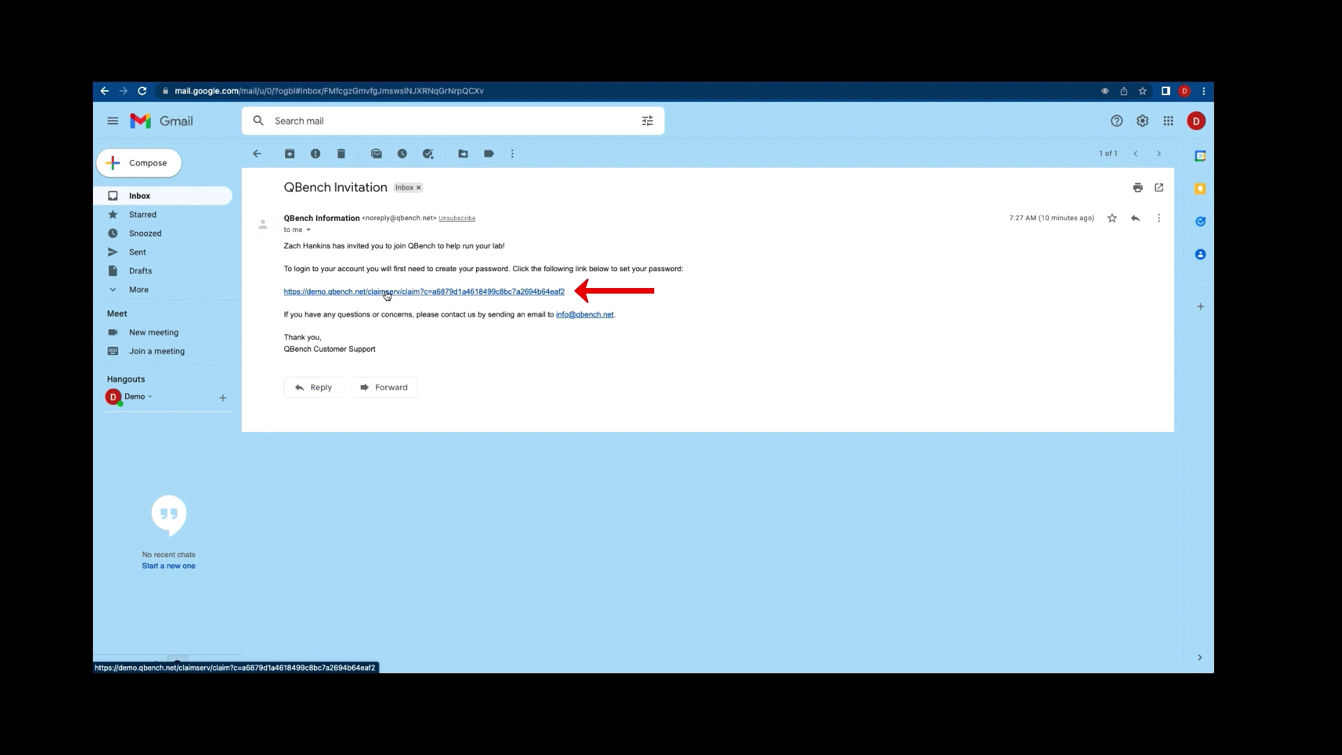 You will receive an invite in your email from QBench Information titled QBench Invitation.