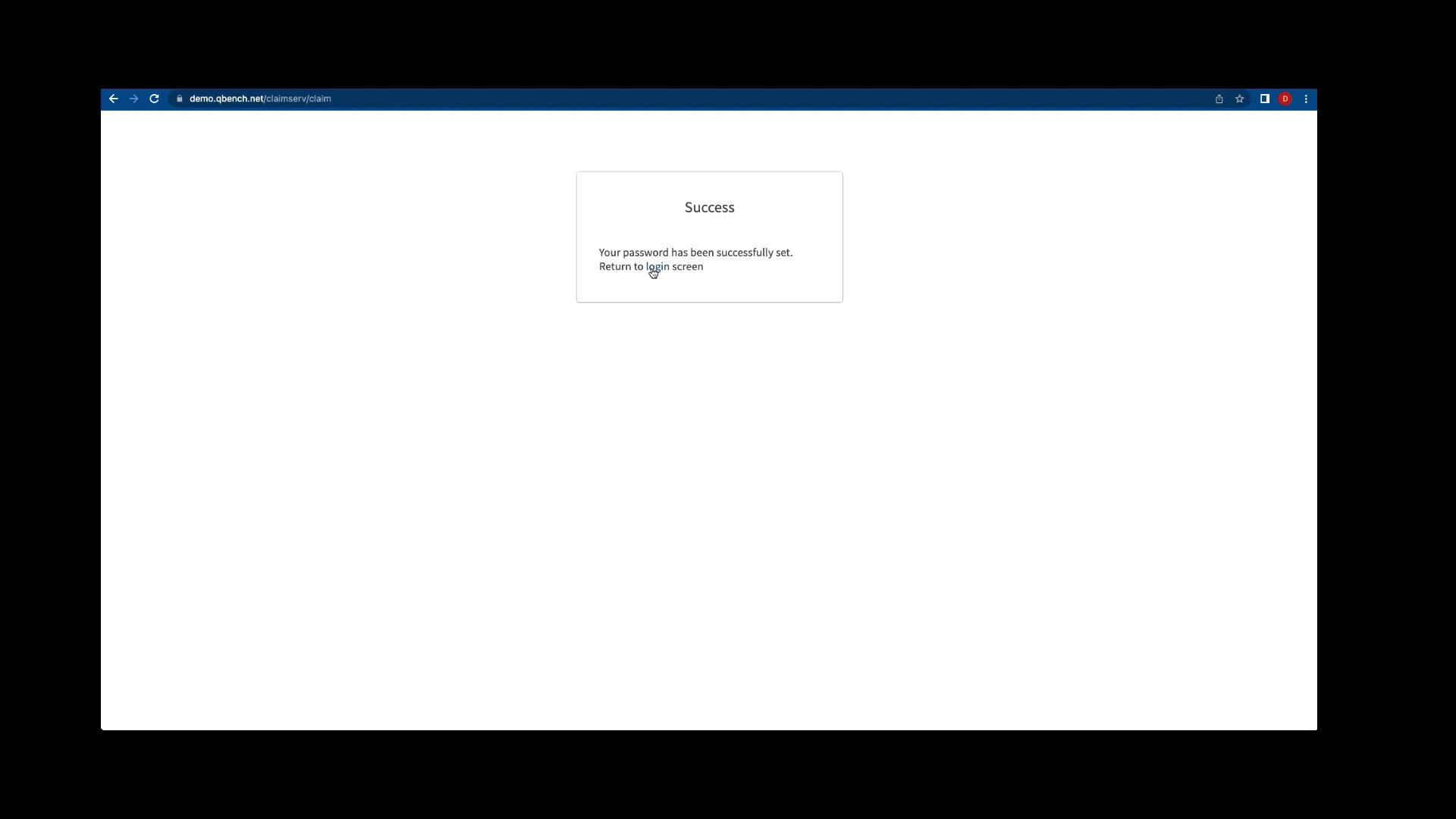 You will get a Success Screen. Click Return to Login Screen